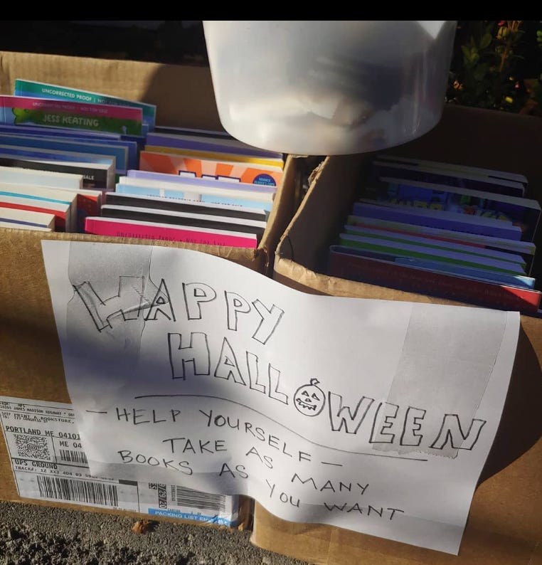 So I’d like to thank my friend Margie Myers-Culver, who told me she gives books out to trick or treaters. Seven years ago, I decided to give it a try. And it was amazing.