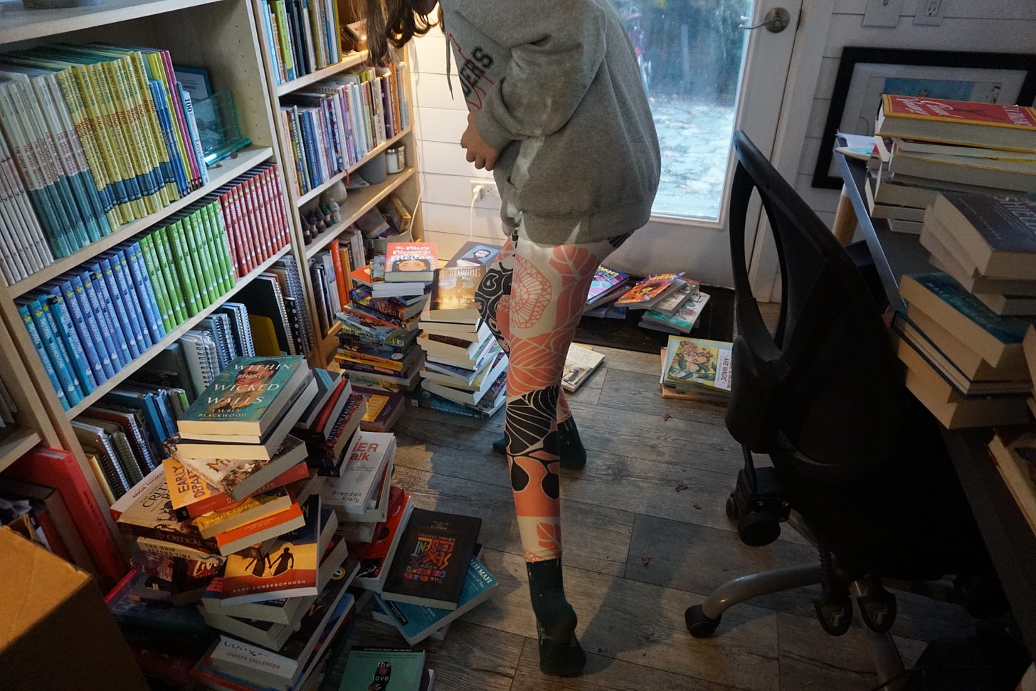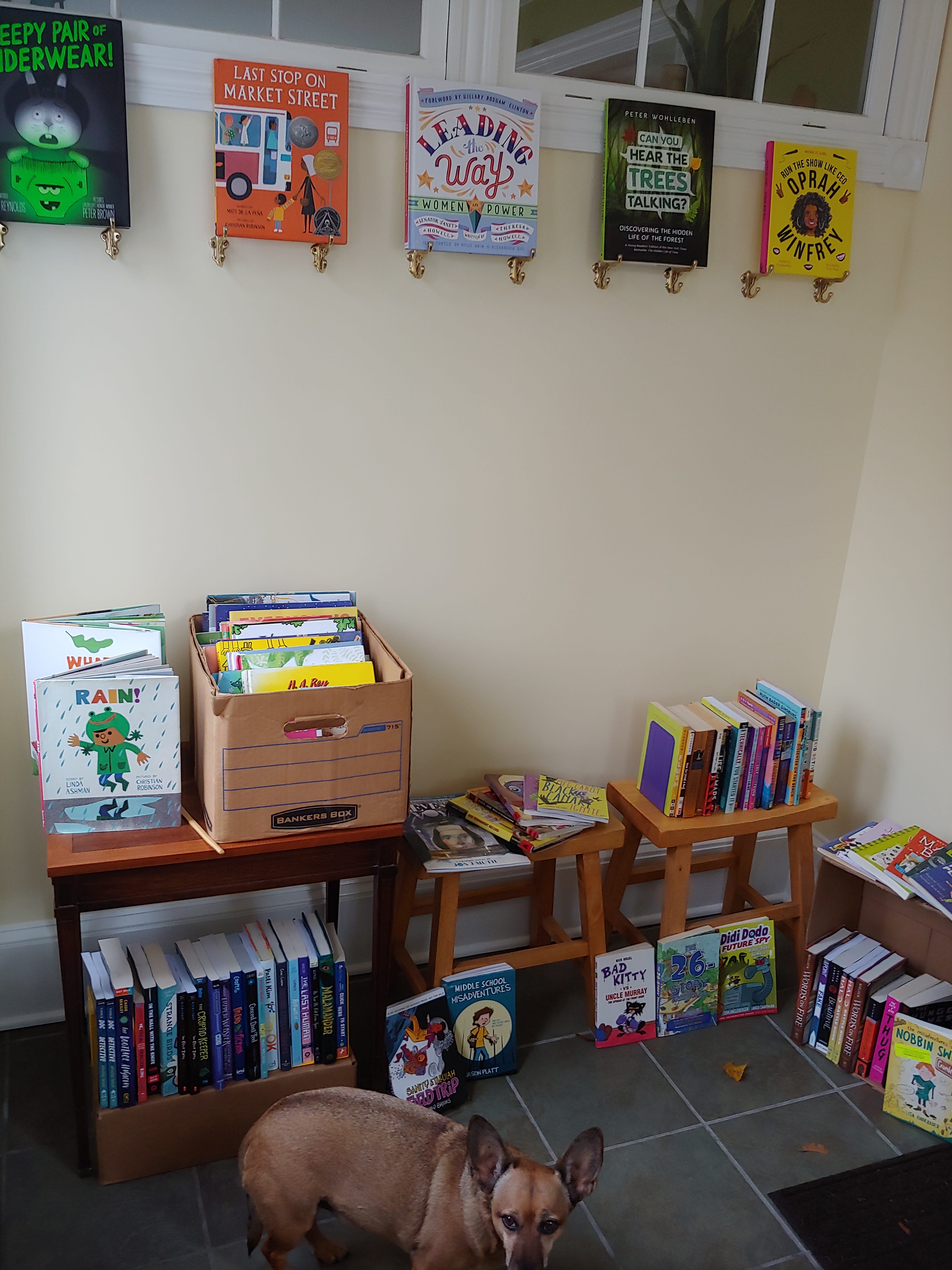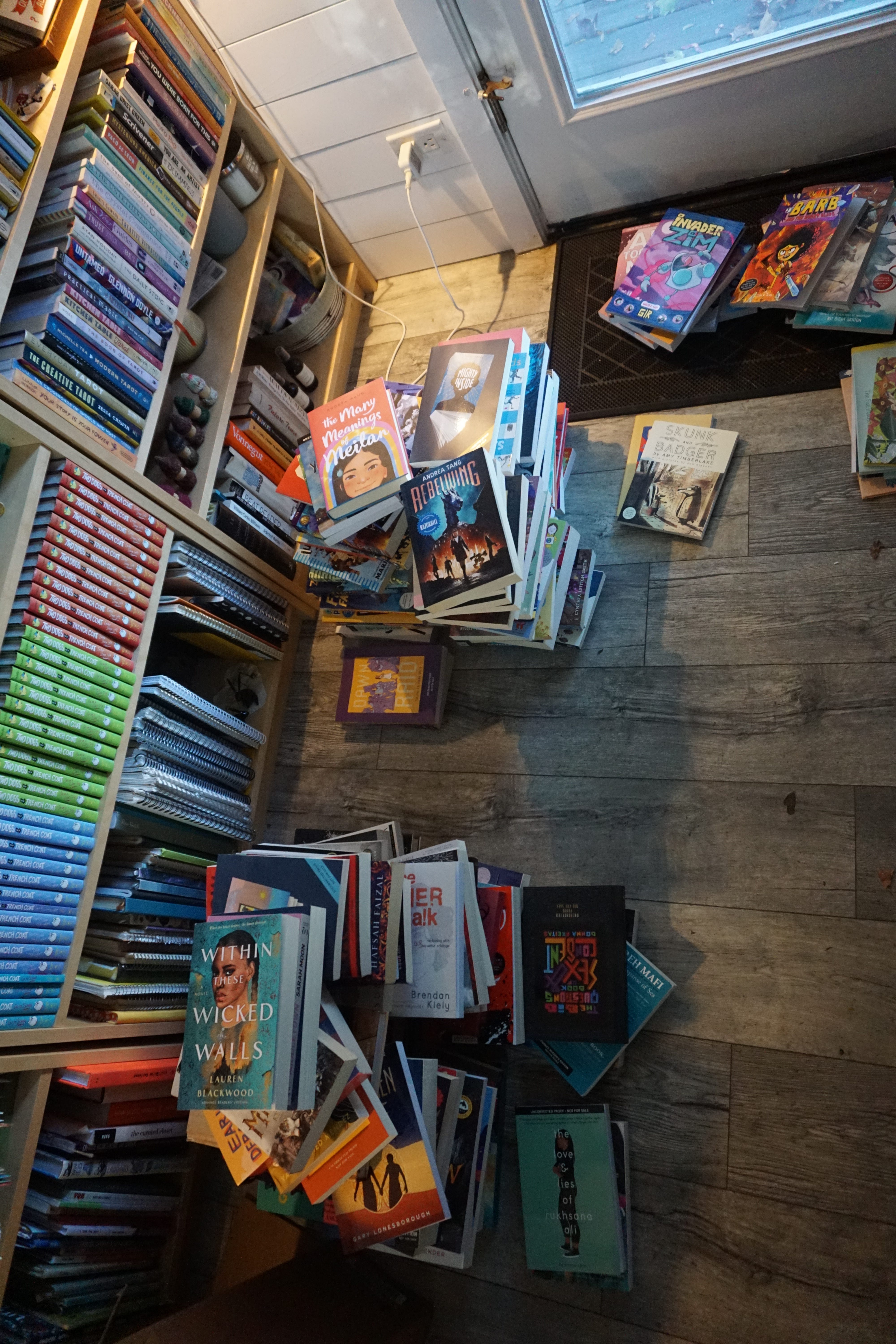 I get most of the books for free. I get them at the swap shop at the dump or from Little Free Libraries. Some I buy from the library sale or used bookstores or Goodwill. The last few years I’ve partnered with the amazing local independent bookstore, Print: A Bookstore, to pass on their excess galleys.