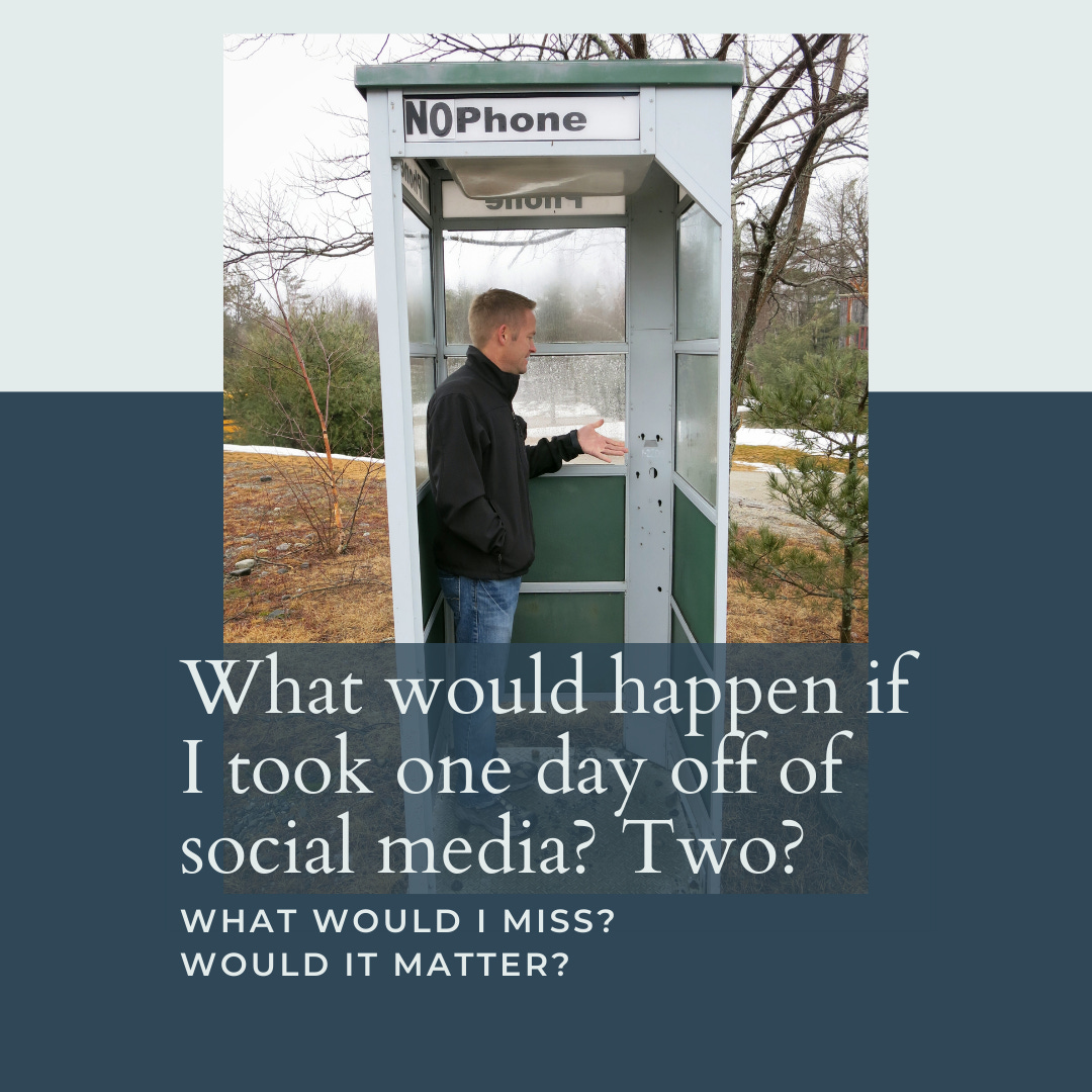 2. What would happen if I took one day off of social media? Two? What would I miss? Would it matter? If I don't know that my college roommate's sister got a new plant, what will happen? If I don't see a selfie of a semi-celebrity I connected with once, what will happen?