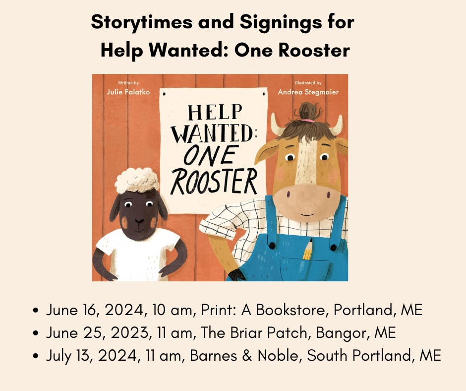 Next week: the actual book comes out!3 There will be a post on Tuesday, as well as the book trailer, and I’ll announce one reader who will win a copy of the book, and two paying subscribers who will win either a picture book manuscript critique or a half-hour creative coaching session.